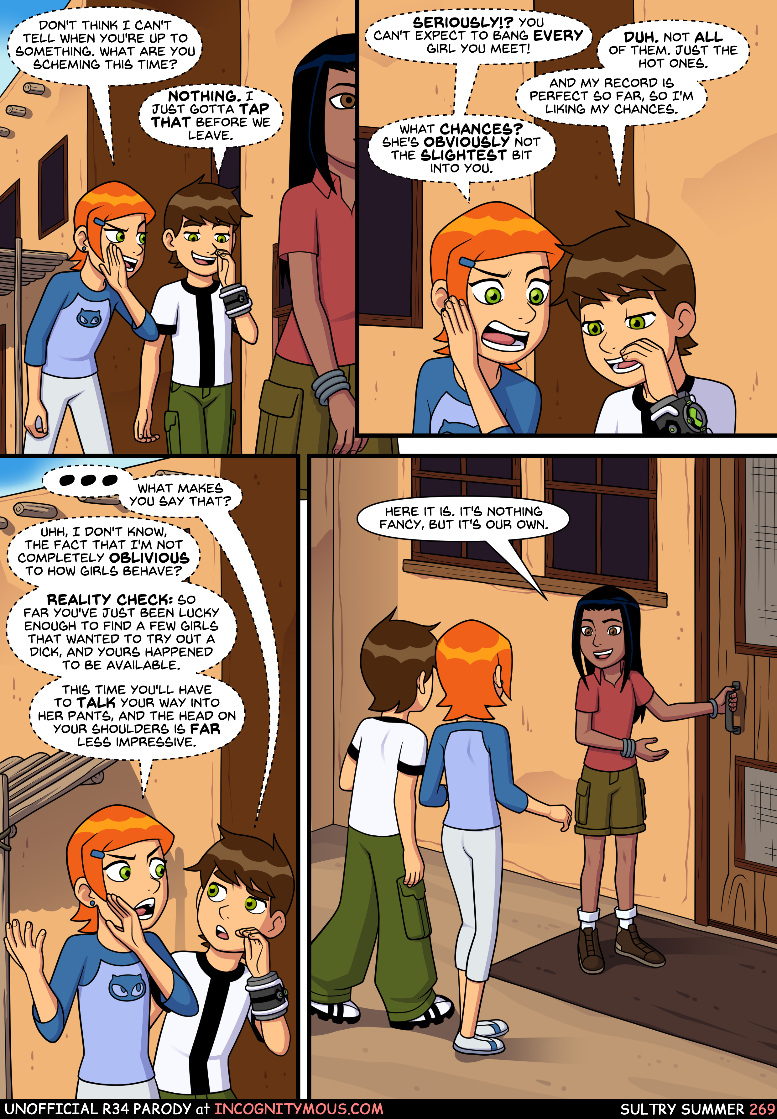 This page marks the end of the current scene. As such this comic will be on hold until the next scene of Sultry Summer is complete, the first page of which will be uploaded here next week.